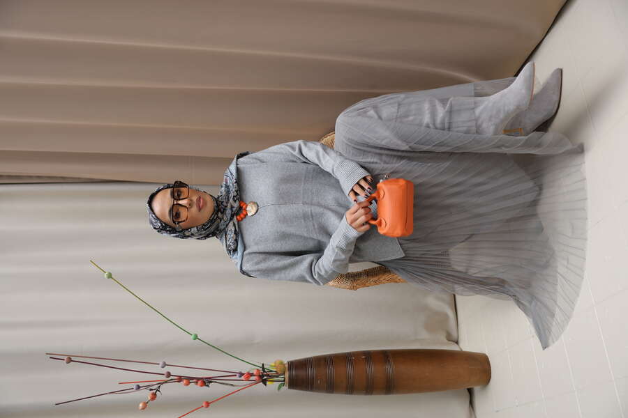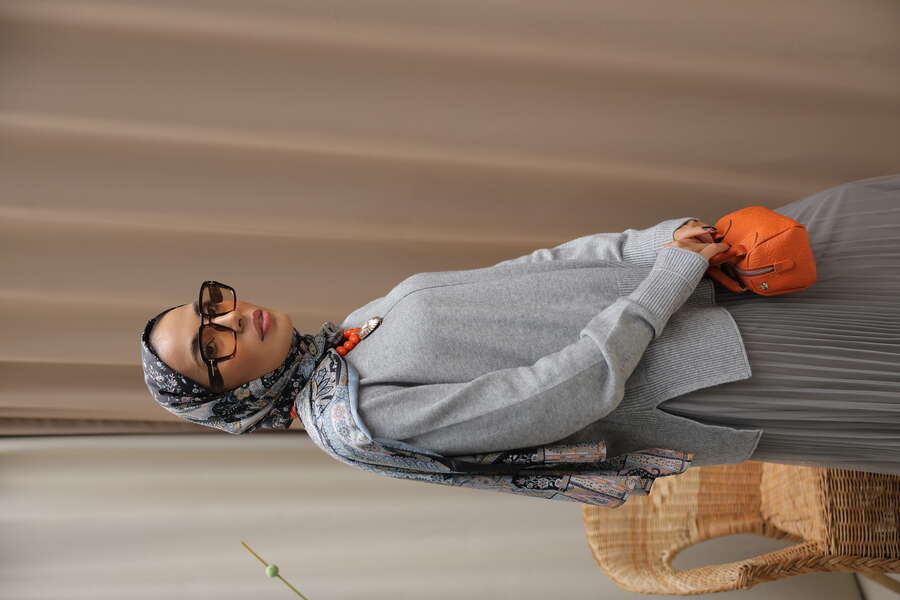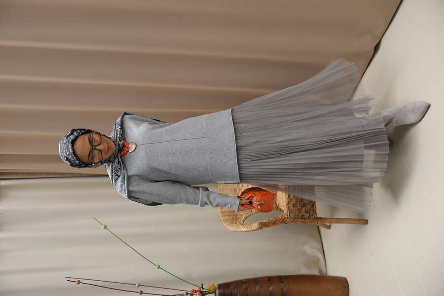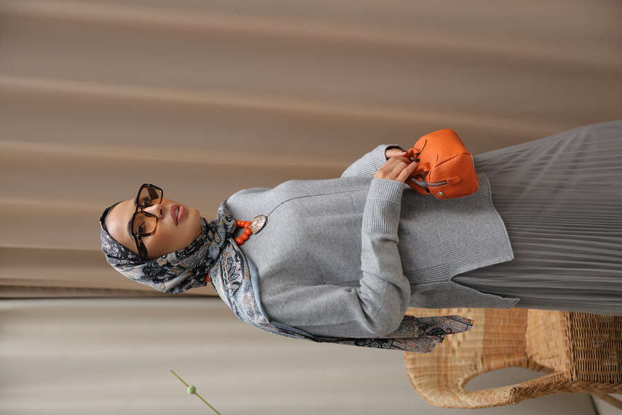 Kadın Dikiş Detaylı Etekli Triko Takım- Gri