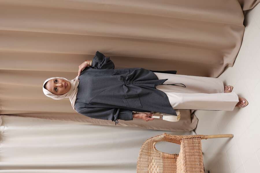 Kadın Krinkıl İkili Büzgülü Takım-Antrasit
