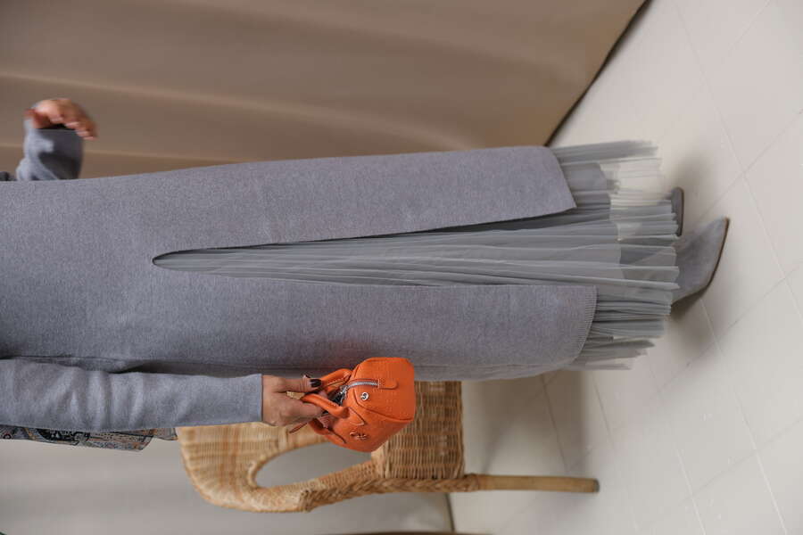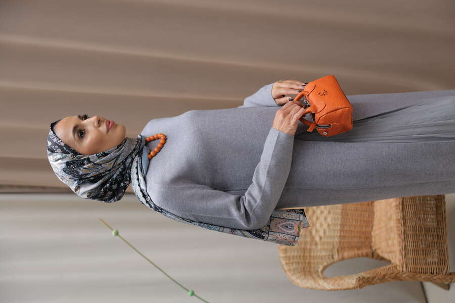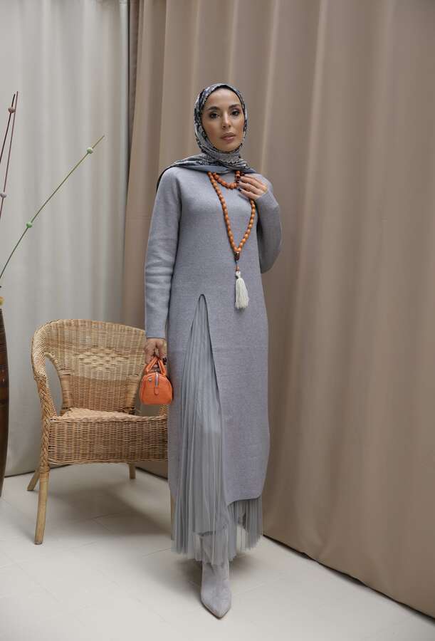 Kadın Yırtmaç Detaylı Elbise&Etek Takım-Gri