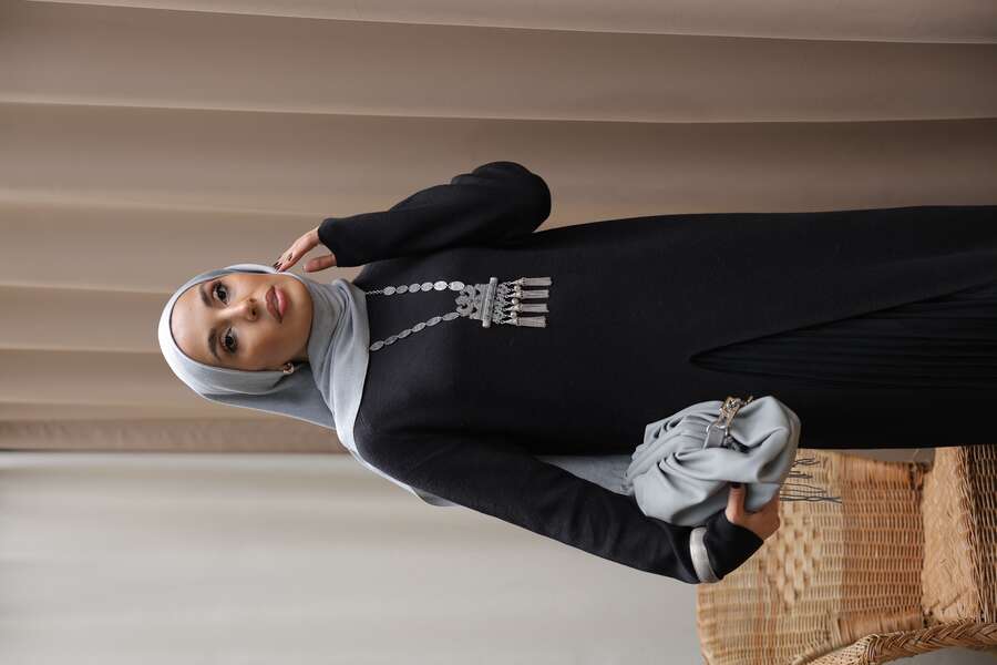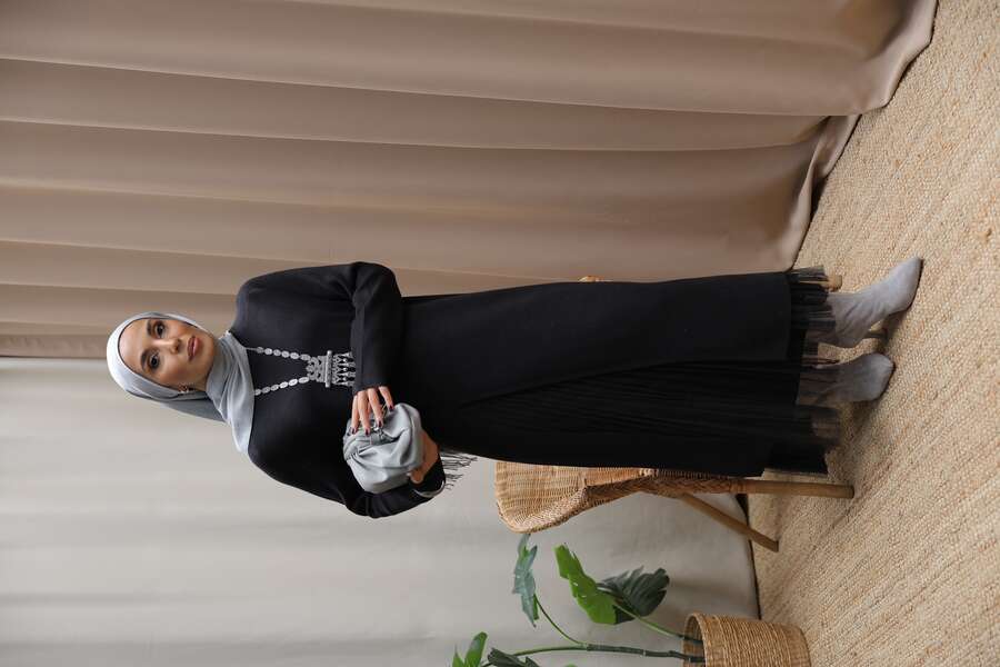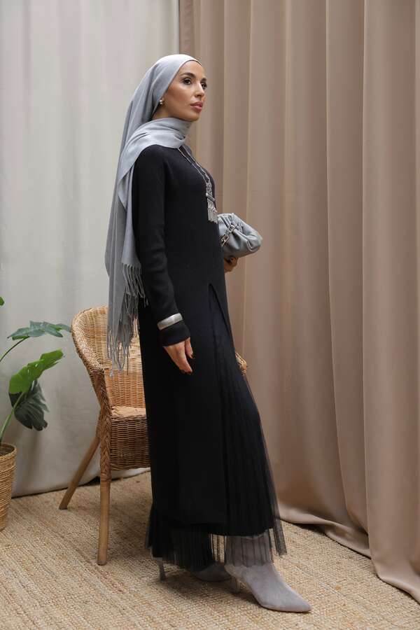 Kadın Yırtmaç Detaylı Elbise&Etek Takım-Siyah